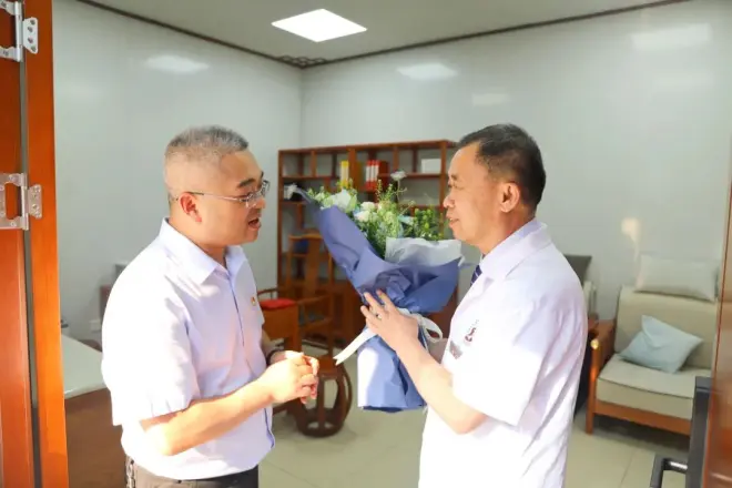 喜迎医师节,慰问暖人心。为传递党和国家对医务工作者的关心关爱,在全社会推动广泛形成尊医重卫的良好氛围,8月18日上午,两江新区中医院党委委员、副院长王心玉,党委委员、副院长许毅,深入一线,来到全院各医药技科室、社区卫生服务中心及护理院开展医师节慰问活动,向他们送上鲜花和慰问品,并致以节日的祝福。