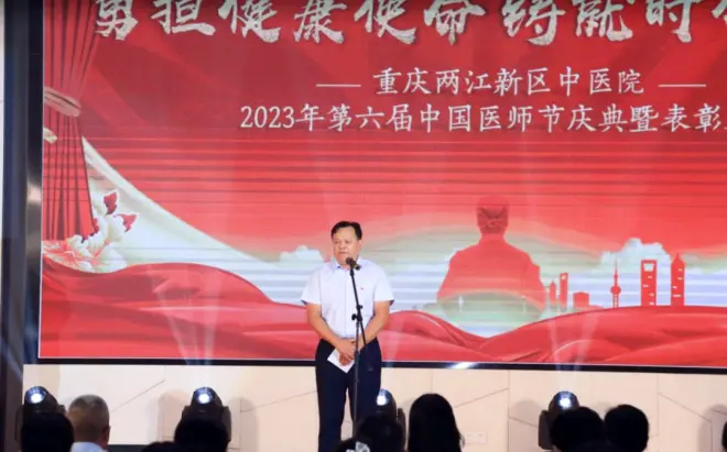 8月18日下午,第六个“中国医师节”庆典暨表彰大会在E家酒店三楼宴会厅隆重举行。两江新区社会发展局党组成员、副局长刘展,院级领导班子、全院除值班人员外300余人参加大会。