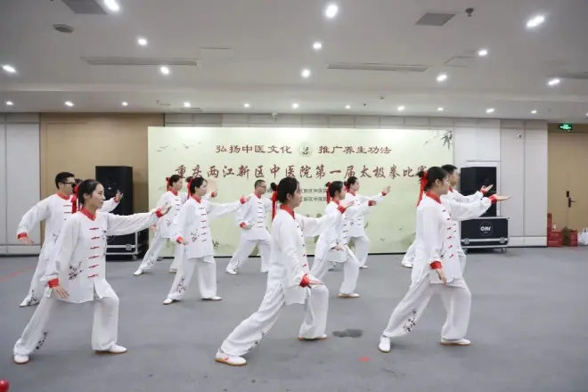 中医养生功法有着悠久的历史和深厚的文化底蕴,作为一种独特的养生方法,在传统中医文化中有着极为重要的地位。比赛场上,各参赛队伍着装整齐,伴随着悠扬的音乐,动作自然洒脱、协调优美,展示了太极拳的神韵,展现了我院职工良好的精神风貌。