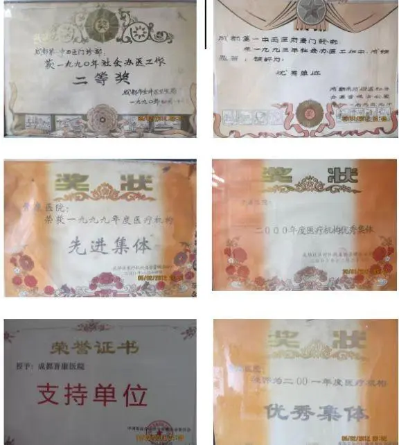 从业至今,蔡昌晋院长孜孜以求,砥砺前行,所获荣誉不计其数。1984年起医院、个人连年都被卫生部门评为“先进单位”、“先进个人”;从医来先后被四川省各新闻媒体宣传,并报道医德及医术;荣获中国中医名科名院十佳优秀民间诊疗单位;荣获“国医名师”学术传承高层论坛“中医药特色疗法、绝活演示技能大赛”中获得优秀奖; 多次邀请参加四川省青年联合会行现场演示蔡氏脏腑经络微循环整体疗法——穴位注射法。先后获得“建国70周年十大杰出贡献人物”、“华人楷模·公益奖”、“2018年度国际中国公益创新”、“全国学雷锋先进个人”;:中国战略科学家“”中国名医功勋人物“等荣誉。