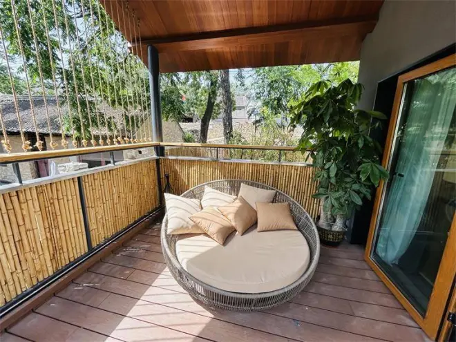 进入民宿房子前有摇椅和鱼塘,整体外观简洁,高端,雅致清新,周围环境又很安静,所以在这里休息会让人心感觉非常安静,亲近自然,放松身心。