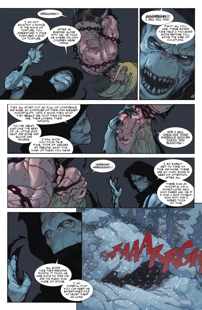 雷神托尔足以承受屠神者格尔长达十七天的严刑拷打,而这样的拷打能让拷打之神在一天之内就无法承受