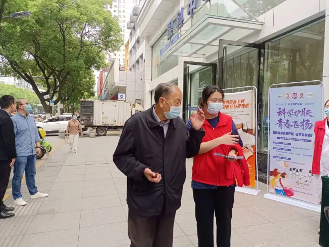 图为实践志愿者为患者介绍义诊活动