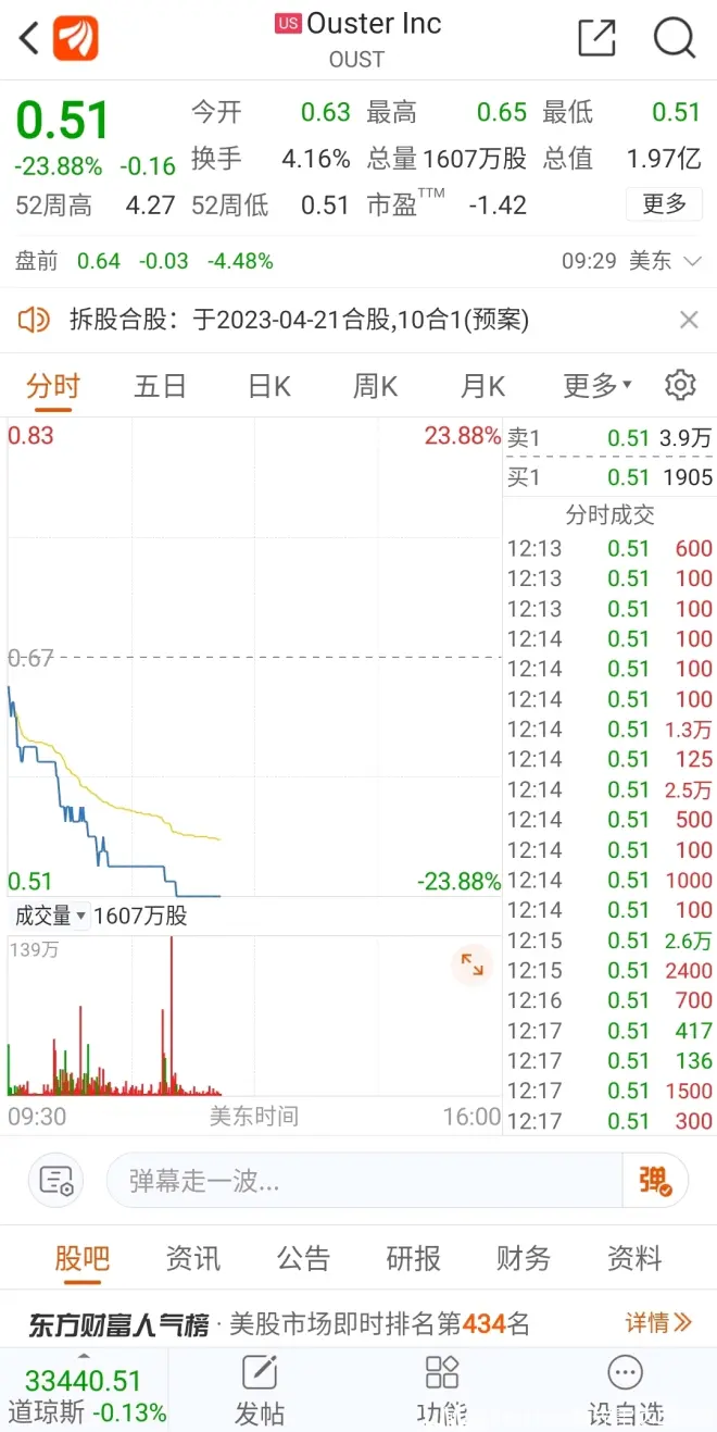 Ouster由于目前股价低于1美金,将进行合股操作,每10股合为1股。预计4月20日完成。 受此消息影响,Ouster股价盘中跌23.88%.