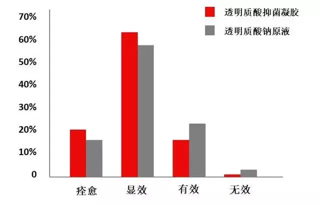 透明质酸抑菌凝胶显效的比例明显高于透明质酸钠原液,透明质酸与中草药相结合的疗效明显优于单透明质酸。