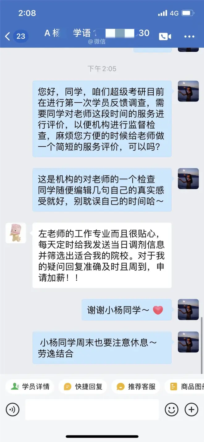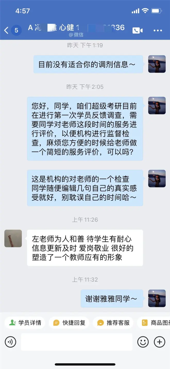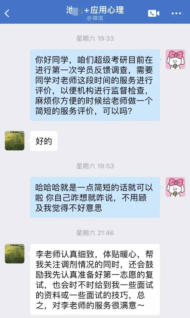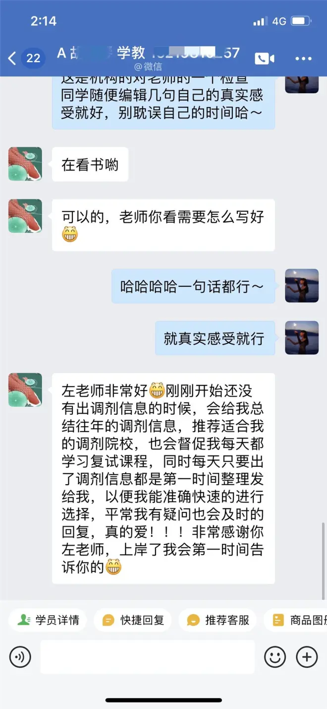 超级考研1对1调剂辅导已经服务多年,有着完善的服务体系,每年都能帮助到80%以上的学员调剂上岸,来看看23考研的学员的如何反馈的!