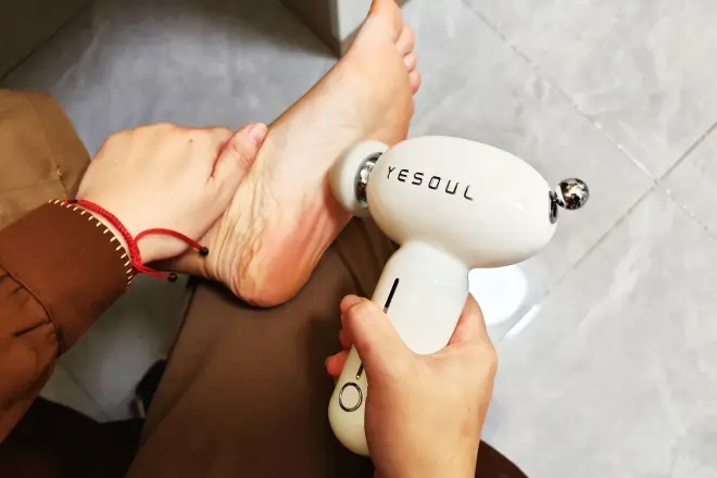 对于我们这种新手骑行者来说,酸疼部位除了腿部臀部外,还有脚掌与手心这些薄弱部位,野小兽MG16筋膜枪配备了金属蘑菇头、硅胶球形头和硅胶锥形头这3款专业按摩头,这个亲肤好用的硅胶锥形头用于冲击手掌、足底深层组织恰好合适,一档冲击几分钟,那酸爽别提有多舒畅了。