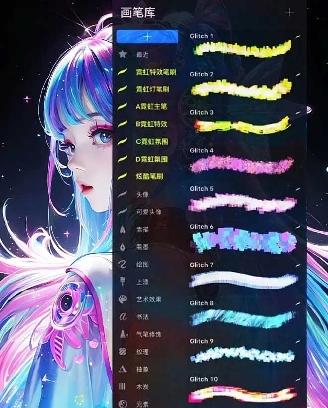 » 【PS/Procreate/画世界pro】自制超好用的霓虹笔刷,一笔搞定赛博朋克~