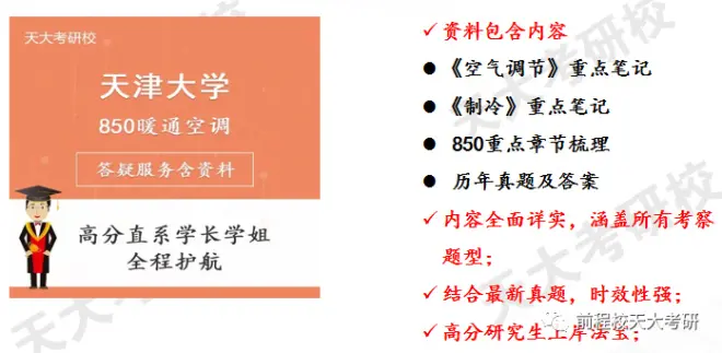 天大暖通850真题复现率很高,掌握真题的出题规律和考察重点,熟悉真题的题目类型,对最后考试是十分有帮助的。