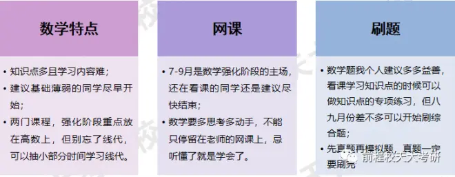数学非常难,有两门课,强化阶段重点放在高数上,但别忘了线代,可以抽小部分时间学习线代。