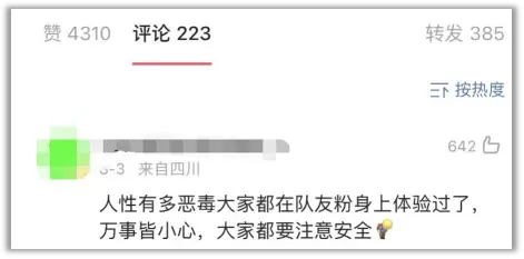 评论区里还有人不忘补充:人性有多恶毒大家都在队友粉身上体验过了。