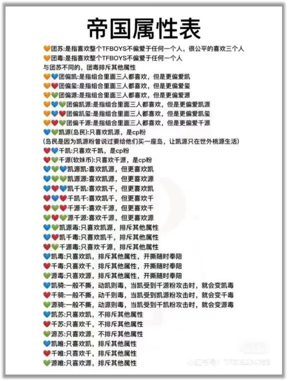 由于其中的派系画风实在过于复杂,不搞个表可能连吃瓜都吃不明白: