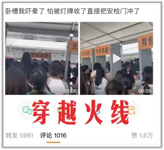 再加上很多人不希望自己偷偷带进去的灯牌被收,直接冲出安检门,结果场面就越发不可控制。