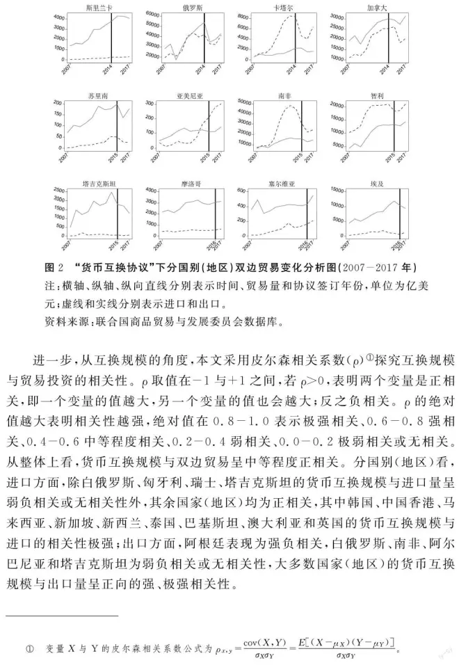 中国货币互换协议,又称央行双边本币互换协议,旨在通过降低双边贸易成本、规避第三国汇率波动来促进双边贸易发展。本文基于理论机制分析探讨中国货币互换协议缔结的驱动因素,并利用系统GMM模型,探究货币互换协议政策以及货币互换协议缔结的驱动因素对双边贸易的影响。结果表明中国货币互换协议对双边贸易具有创造效应,但仍存在效用滞后和力度不足问题。货币互换协议缔结的驱动因素——双边贸易成本和第三国汇率波动,对双边贸易表现为显着负向影响。因此,本文基于中国货币互换协议的作用机理及研究结果提出三点政策建议:(1)加强货币合作,扩大货币互换范围,增加与已签订国家的货币互换额度。(2)构建和谐融洽的国际关系,提高货币互换金额的动用率。(3)营造良好的货币互换环境,充分发挥货币互换稳定汇率波动,降低贸易成本的功能。 一、引言 当今世界面临着百年未有之大变局,全球化与反全球化思潮并存,国际经贸规则进入重构期。 国际结算货币的单一化会导致参加国际结算的国家面临因一国国际收支恶化而引发货币危机的威胁。 为应对美元霸权以及「美国优先」的反全球化政策取向,全球去美元化浪潮逐步升级,进而可能引发全球货币体系的解构和重构,从而为人民币国际化发展带来契机。中国货币互换协议是一个双向合作过程,通过约定汇率的双边本币互换模式为对方国家提供融资便利,扫除了协议国央行投资人民币储备资产还需经由第三国货币美元的汇兑风险,进而降低了双边贸易成本,是在当前多边贸易体系和全球化遭遇贸易保护主义冲击的严峻考验下,推动协议国与中国双边贸易发展、区域贸易人民币主导型结算乃至人民币国际化的关键举措。中国货币互换协议符合新形势下习近平总书记倡导构建人类命运共同体的战略构想,推动各国互利共赢、共同发展,为贯彻「一带一路」建设提供经贸往来支持,有利于我国在全球经贸规则重构中占有一席之地。 由于其重要的现实意义,中国货币互换政策于2008年底开始实施起至今一直受到社会各界的广泛关注。近年来,与中国签订货币互换协议的新签国家和续签国家都明显增加,尤其是2018年,人民银行先后与马来西亚、白俄罗斯、印度尼西亚、哈萨克斯坦、澳大利亚、英国、阿尔巴尼亚、南非、智利9个国家和地区的央行续签了本币互换协议,并与尼日利亚、日本新签了本币互换协议,截止至2018年底已与38国签订互换协议,总金额超过9万亿元人民币。数据来源:根据中国人民银行官网宏观审慎管理局数据计算所得。虽然中国货币互换政策得到了广泛认可,但在当下国际贸易局势动荡、国际关系复杂多变的形势下,中国货币互换协议有没有真正促进双边贸易的发展尚无定论。 中国货币互换协议在当下具有重要意义,亟需厘清中国货币互换协议的理论机制,明确实施效果,从而为货币互换政策的进一步落实提出切实可行的政策建议。据此,本文提出的问题是,中国货币互换协议缔结的主要驱动因素有哪些?这些因素对双边贸易有何影响?在这些因素的作用下,中国货币互换协议与双边贸易的联动效应及其机理何在?本文后续结构安排如下:第二部分是基于货币互换协议缔结的驱动因素及其与双边贸易联动效应的文献分析。第三部分为探究中国货币互换协议的理论机制、货币互换协议与双边贸易关系的现状,并提出相应的研究假设。第四部分为研究设计,包括经验模型设定、变量和数据处理过程。第五部分为计量检验结果与分析,包括单位根检验、基准回归和稳健性检验。第六部分是结论和政策建议。 二、文献综述 货币互换的相关研究集中在货币互换的发展、目的和作用三个方面。文章将从政府间货币互换协议的发展历程、货币互换协议缔结的驱动因素、货币互换与双边贸易的联动效应三个方面对国内外研究进行综述。 (一)政府间货币互换协议的发展 历程与驱动因素 最早的央行间货币互换可追溯至20世纪60年代十国集团创建的互惠性货币互换协议,但实施效果并不理想。其主要用于解决流动性短缺问题,且过分注重自身利益,这使人们对互换安排的长期影响产生质疑。1997—1998 年亚洲金融危机爆发后,为增加外汇储备,东盟国家与中日韩三国开始着手签订一系列货币互换协议,将其作为地区性金融合作「清迈协议」的重要制度基础。国际金融危机爆发后,全球范围内建立了多个国际货币互换网络,东亚地区的货币互换协议的发展出现了新的趋势,部分国家开始超越区域金融合作框架,转而采取由各自中央银行签署双边协议,以本币换取本币的形式相互提供流动性。其中以中国为典型代表。这种政府间的双边本币互换,引起了国内外学者的广泛关注,针对货币互换协议缔结的驱动因素,主要集中在两个方面:降低第三国汇率波动风险、减少贸易成本。 从中国与协议国双方角度出发,通过货币互换获取外币资金进行外汇市场干预,有利于维持本国汇率稳定。同时,货币互换还可相互为对方企业在两国之间进行的贸易与投资活动提供融资便利,从而达到降低企业汇率风险和促进双边贸易发展的目的。从协议国角度出发,货币互换协议的签署,提高了人民币可得性,扫清了一国央行投资人民币储备资产还需经由第三方货币的汇兑风险,有利于贸易伙伴国企业应对国际流动冲击,并减少企