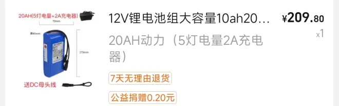 行动:v1版本的充电宝采用分体设计,电芯使用淘宝购入的成品12V锂电池组(下图所示),电池组自带专用充电器,只需要自己设计制作升压板实现恒压恒流输出即可。