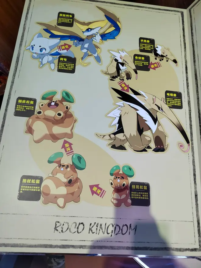 场馆内的布局还是比较简洁的,官号大概也发过。进门左边是两个展示周边的橱柜,橱柜中间是一本超大的图鉴,我略微拍了几张照片。