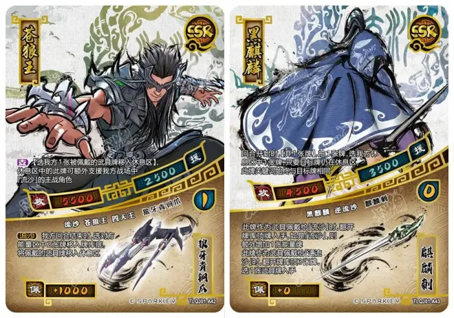 黑麒麟(TLQJ01-A43)该卡也出现在不少选手的「流沙」卡组中,作为支援型武具牌,支援战力合格,佩戴效果可以帮助我方补充资源。