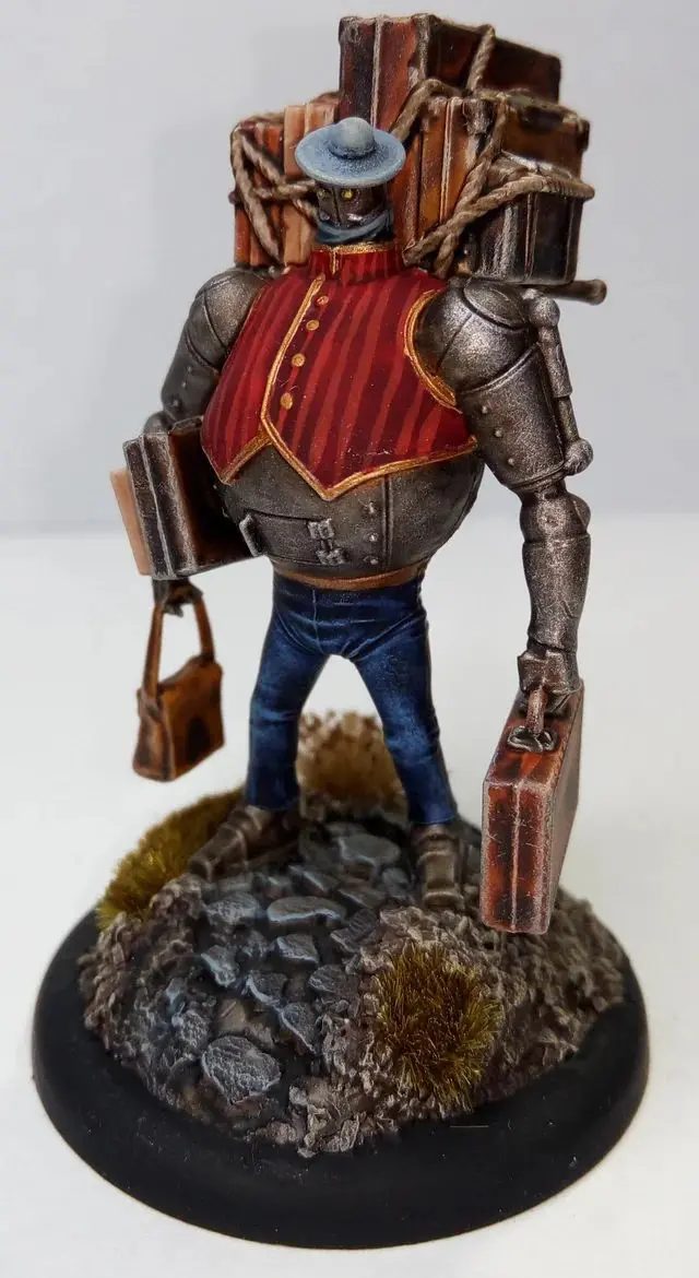 长途航行意味着要随身携带相当数量的设备。当无法配备预备役会员时,探险家会社将不惜一切代价确保他们的贵重物品在长途跋涉中能得到妥善保管。行李搬运员是会社最优雅的解决方案,一种兼具力量、耐力和运载能力的人形构装体。仅一个搬运员就可以轻松地携带一位会社会员可能需要地的所有茶杯、地图、望远镜和小摆设。在必要时,它们甚至可以抵御偶尔出现的恶棍或臭鼬猿。