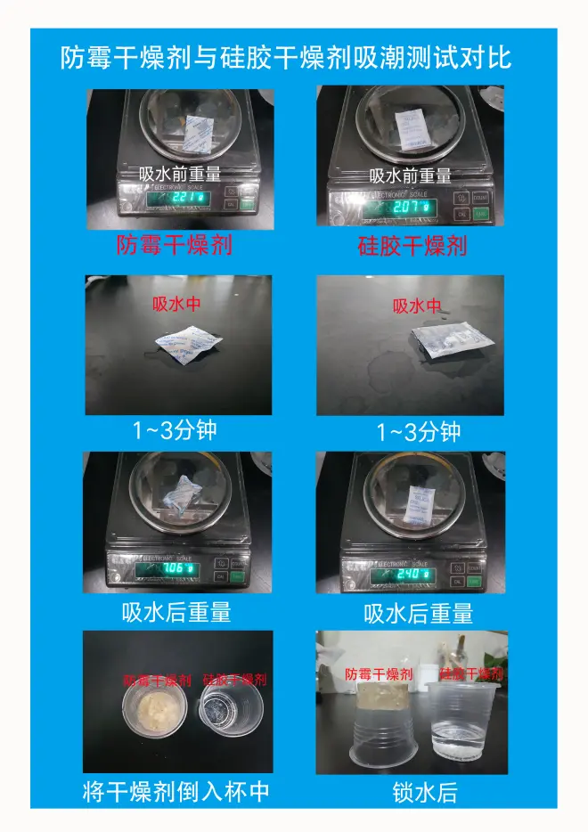 防霉干燥剂gzzxsc吸湿率是自身重量的3倍,饱和吸湿率达300%,是普通干燥剂吸潮能力的数十倍,而且是矿物材质,可自然降解,属于环保型防霉防潮干燥剂,吸潮的同时释放抗霉菌因子杀灭并抑制霉菌和细菌,并且湿度大,释放防霉剂浓度更大,是真正意义上的防霉防潮二合一的干燥剂。
