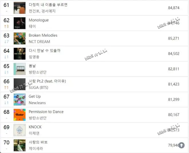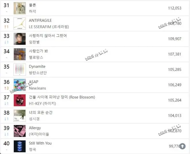 230726Melon日榜收听人数newjeans、田柾国、(G)I-DLE、IVE、Le sserafim、aespa、SEVENTEEN、金智秀、Younha、FIFTY FIFTY、林英雄、NCT、STAYC、防弹少年团、H1key、李茂珍、金晓钟、闵玧其、李彩演、ZB1、朴智旻、EXO、OH MY GIRL等