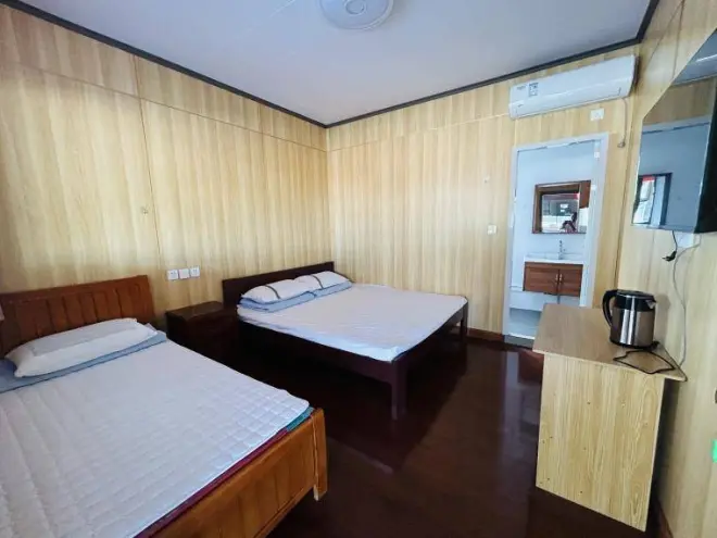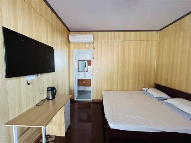 房间设施:客房共计16间,可容纳30入住。房间内部装修风格现代简约,采光通透,整洁漂亮,床铺窗帘温馨舒适,有着十分温馨的住宿环境,入住舒适度极高,定能给您带来家一般的享受。