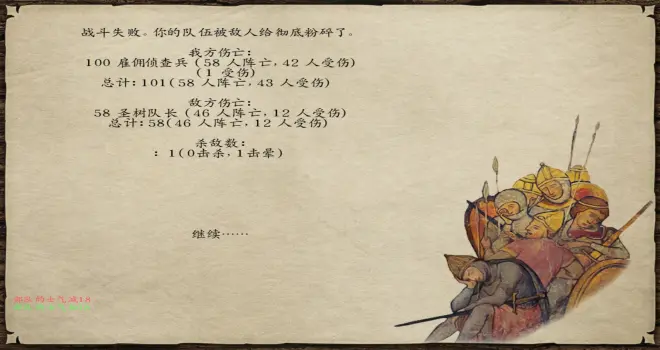 雇佣侦察兵vs巴克利工兵,被克制的步射,虽然装备了能反骑的长戟,但是也无力回天