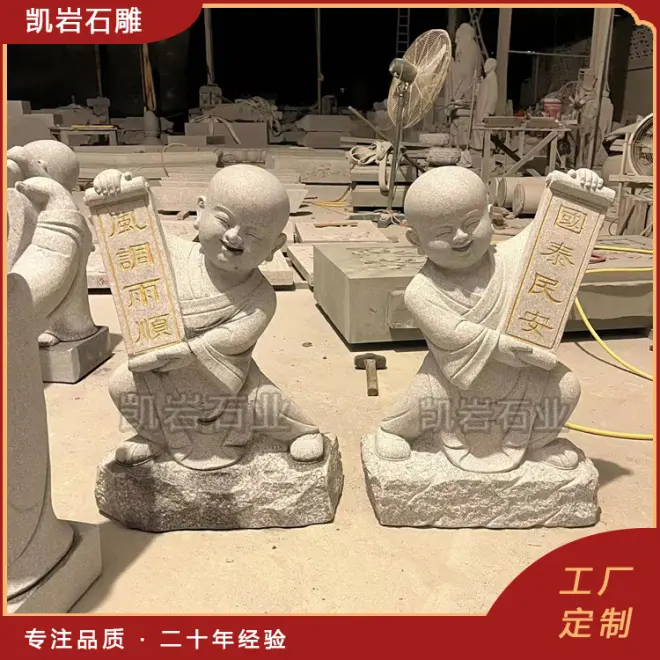 泉州凯岩石业制作的石雕小沙弥,采用优质的石质精雕细琢而成,善用千年文化雕凿工艺的研究、传承、融合和发扬,使石雕作品承载艺术文化、体现更多社会价值。