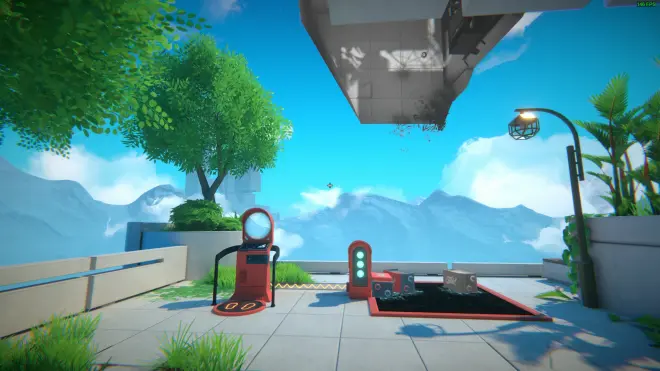 联想到 Superliminal 的部分视错觉机制,我想到的可能性是设计一个坑,在初见时让玩家曲解为地面,并摔落其中,使用时间回退回到地面。没有采用这一机制的原因有很多,我认为最重要的原因是这一机制在第四章中被大量使用了;另一个可能的原因是这一机制可能会产生纯黑色 Wireframe 的材质,对于刚刚进入游戏的玩家,很可能会被理解为贴图错误。如果为了这一处设计新的贴图逻辑,那与第四章又没有保持统一。