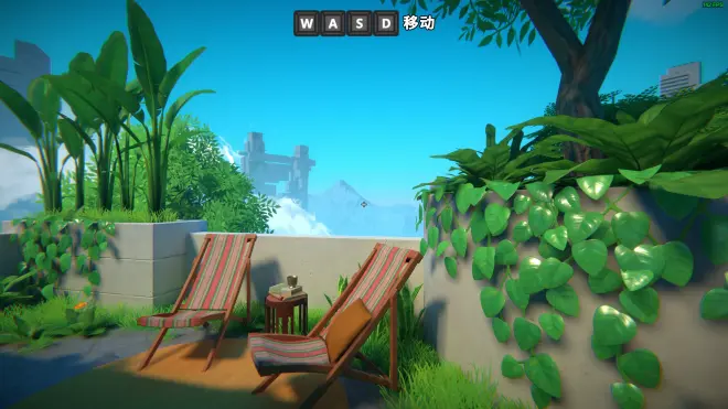 起初的视角很巧妙,很容易吸引玩家在不转动视角的条件下坐下。离玩家更近的椅子在坐下后正好能看到通路。这里玩家首次与游戏内物体交互,学会了交互方式。
