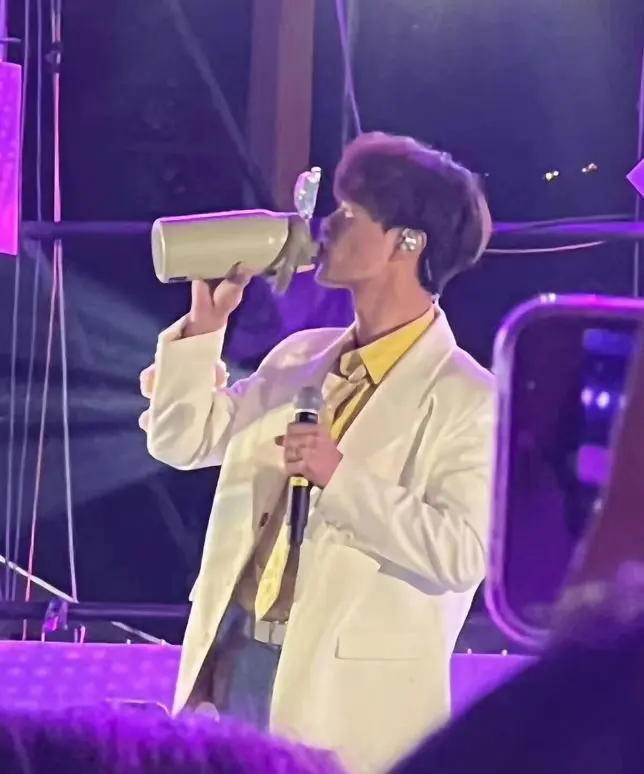 粉丝还拍到了陆虎喝水的模样,他拿着大水壶,估计是自己带的茶,画面十分逗笑,不愧是我们的虎子哥,唱水都这么逗。