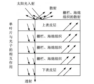 光子与单片叶子的相互作用可以分解为以下相互独立而又有联系的子过程,如图1所示,图中箭头表示其互相之间可能存在的转移过程。