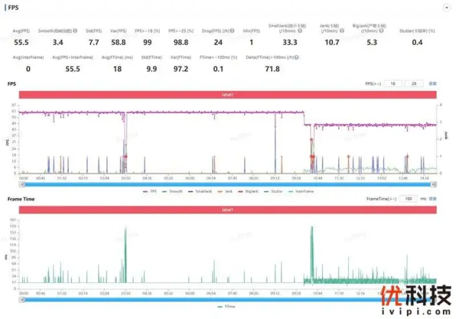 关于iQOO 11S的游戏体验方面,笔者也是通过几款时下热度较高的游戏进行体验,所体验游戏均开启最高画质或是最高帧率,从PerfDog数据可以看出,无论是90Hz模式的《和平精英》还是120Hz的《王者荣耀》和《QQ飞车》再或是144Hz的《使命召唤手游》均可以流畅且几乎满帧的流畅状态下运行。即便是公认较为吃配置的《原神》也是能够被iQOO 11S完全拿捏,从PerfDog数据上看,前10分钟处于跑图和战斗状态下依旧保持近乎60Hz的最高画质满帧运行,而在后5分钟则是开启游戏插帧后流畅度体验再度升级,可见iQOO 11S在游戏体验方面拿到强悍实力。