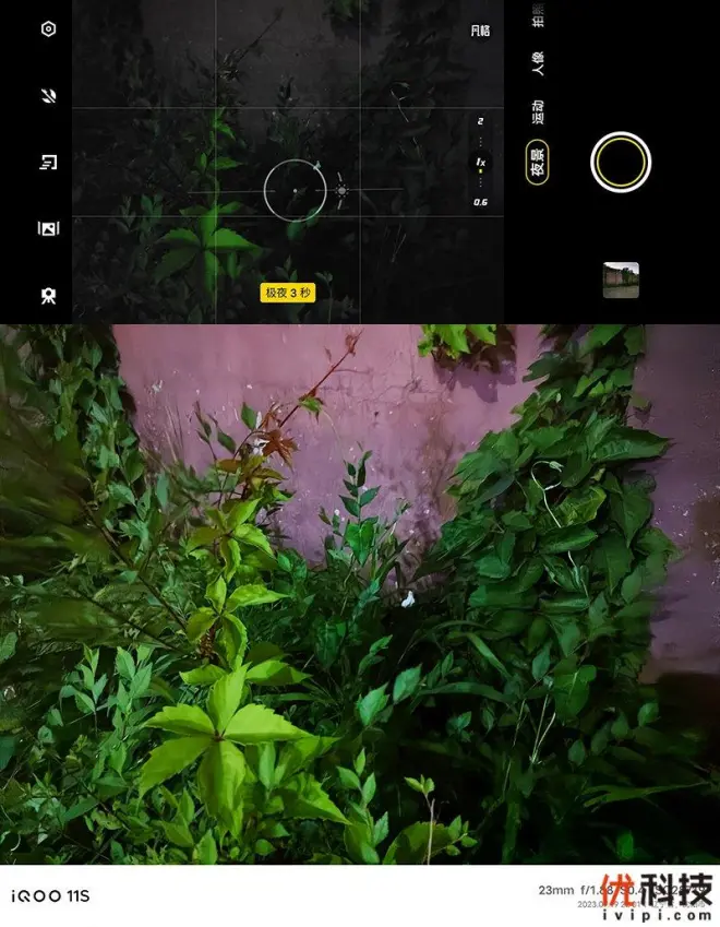 至于夜间拍摄方面,笔者选择在深夜的小区内进行拍摄,此时光线非常暗,可视度极差,但得益于超算独显芯片的加持以及VCS IMX866的实力,iQOO 11S依旧能够拍出不错的照片,从上图可以看出实时环境可是状态和样张的对比,可见iQOO 11S的夜景表现堪比夜视仪。