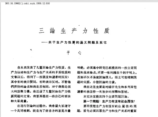 《三论生产力性质——关于生产力性质的涵义问题及其它》(平心)