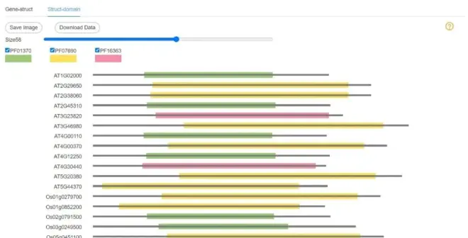 用户可以查看每个基因家族成员的物理和化学性质,并进行简单的筛选。用户可以通过“下载数据”按钮下载数据。这些数据来自ProtParam (https://web.expasy.org/cgi-bin/protparam/protparam)的预测。