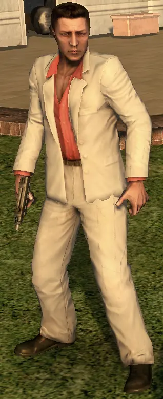 帮派成员通常穿着白色的西装,看起来更像是花花公子而不是一名士兵。