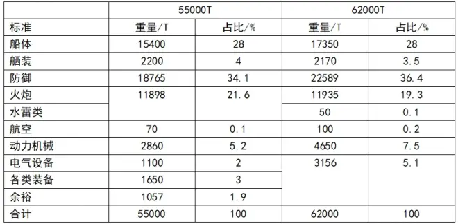 ④该方案的防御设计和1934年的55000T案高度相似(仅弹药库的水平装甲比后者薄51mm)⑤船体重量占比和55000T案一样,都是28%