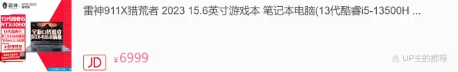 预算7千左右推荐雷神911X猎荒者 2023 15.6英寸游戏本 笔记本电脑RTX4060满血i5-13500