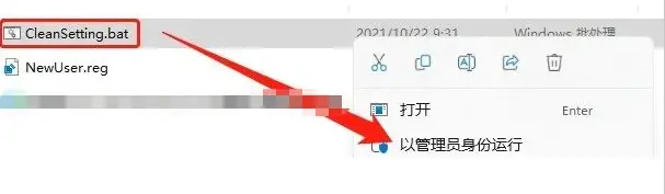 2、进入"Tools"文件夹,以管理员身份运行CleanSetting.bat文件