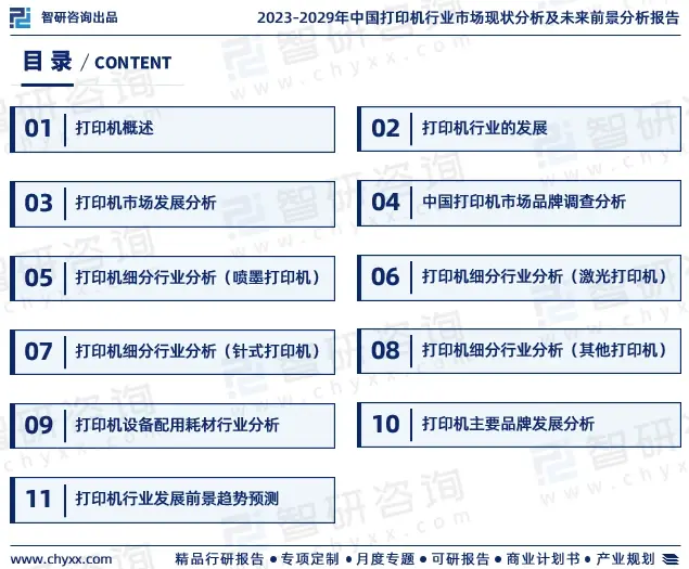 《2023-2029年中国打印机行业市场现状分析及未来前景分析报告》内容丰富、数据翔实、亮点纷呈。是智研咨询重要研究成果,是智研咨询引领行业变革、寄情行业、践行使命的有力体现,更是打印机领域从业者把脉行业不可或缺的重要工具。智研咨询已经形成一套完整、立体的智库体系,多年来服务政府、企业、金融机构等,提供科技、咨询、教育、生态、资本等服务。
