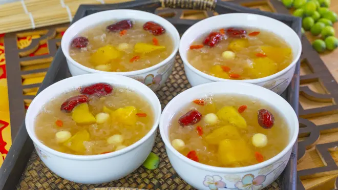 今天蓉儿为大家分享的是一道“5宝汤”,里面有银耳、莲子、红薯、枸杞、红枣,这几种食物都是高营养的食材,也都是特别适合女人食用的食物,美容养颜好消化而且热量也不高,建议三伏天,在家里多煮这道汤喝,做法很简单,关键的营养足,养气血,在消耗特别大的三伏天里能及时为身体补充能量,下面我们一起看看具体的制作方法吧!