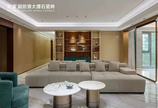 入户玄关,温润典雅的意式氛围伴随归家的仪式感延展开来,全屋地面通铺鱼肚金瓷砖,搭配深色系复古感造型成品柜,带来丰富视觉层次感和空间艺术感。
