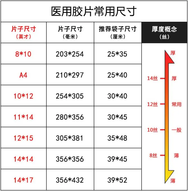 而且,这种塑料胶袋还可以让医护人员更加方便地管理和保存这些胶片,因为这种胶袋具有优秀的防潮、防尘、防静电等特性,可以最大限度地保证胶片的清洁度和安全性。医护人员可以根据不同的临床需求,将不同类型的胶片按照类别、时间、病历号等不同的标准进行分类放置。这样一来,就可以有效地避免胶片的丢失或者错乱的情况发生,同时,也让医护人员能够更加方便地查找和使用需要的胶片。