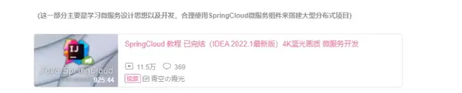 (这一部分主要是学习微服务设计思想以及开发,合理使用SpringCloud微服务组件来搭建大型分布式项目)