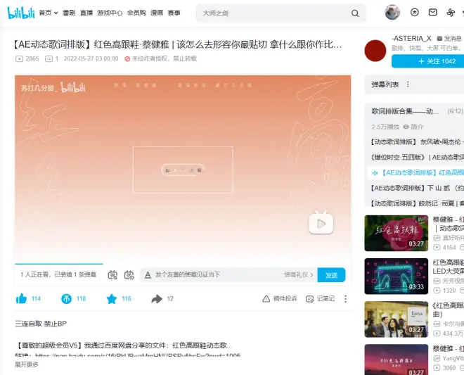 【AE动态歌词排版】红色高跟鞋·蔡健雅 | 该怎么去形容你最贴切 拿什么跟你的评论 (共