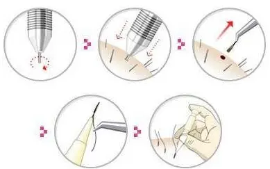 打完麻醉后,就要开始提取毛囊了。医生使用精湛的技术和精细的工具,将所需要的毛囊安全的取出。