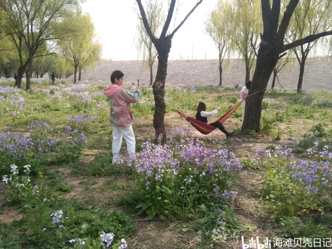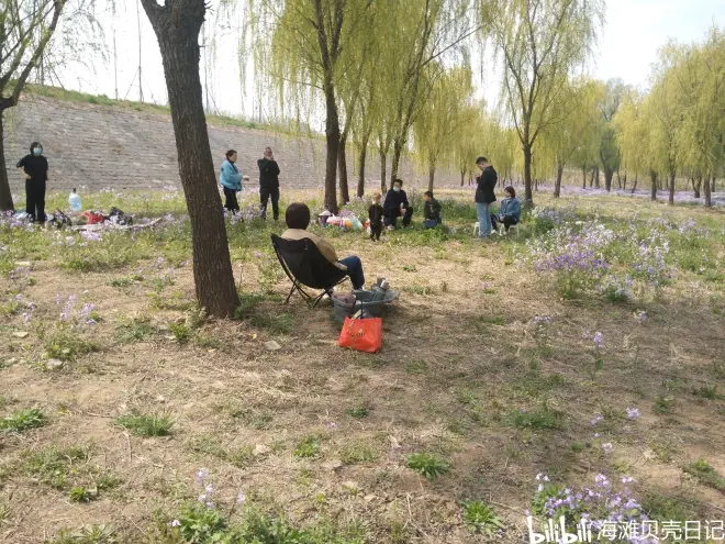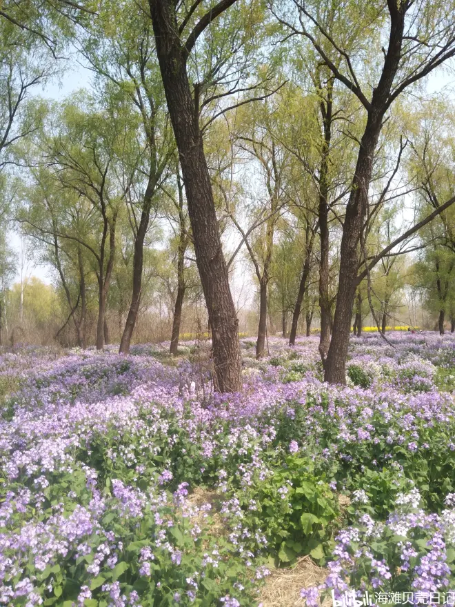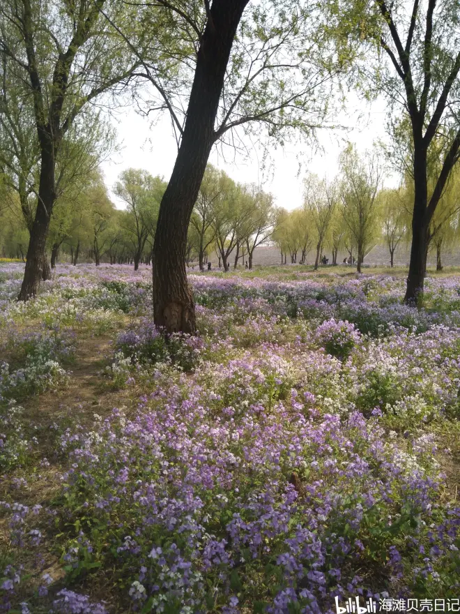 在郑州黄河湿地公园的黄河滩,种植着许多二月兰,现在这些二月兰都开花了,成了网红打卡地。