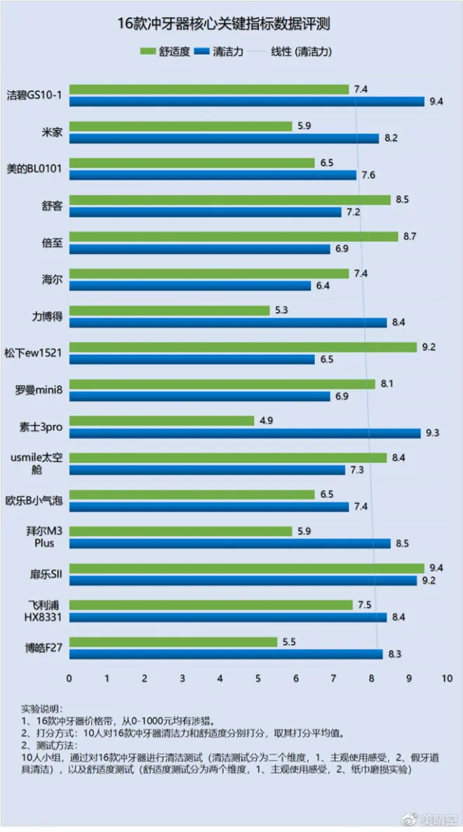 即使我们了解了选购冲牙器的误区,但我们仍然容易购买到劣质产品。这是因为许多冲牙器商家存在虚假宣传,例如宣传自己的产品能够护牙护龈,但实际上绝大多数产品都会对牙齿造成损伤。面对商家虚假的宣传,我们应该如何选择呢?我在论坛上找到了一份冲牙器综合性能评测报告,并结合自己的使用经验,向大家推荐了几款不错的产品。