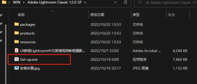 2.双击打开解压出来的Adobe Lightroom Classic 12.0 SP文件夹;