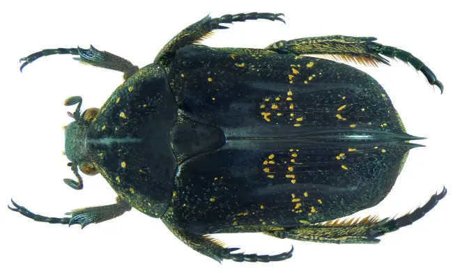 花金龟,金龟总科当中一个非常庞大的家族,包含了三千多到四千个种类,分布于除极地外的世界各地,其分类地位存在一定的争议,国际分类上是作为金龟科(Scarabaeidae)下的花金龟亚科(Cetoniinae),而在中国大陆的分类中则是将其提升为独立的花金龟科(Cetoniidae)